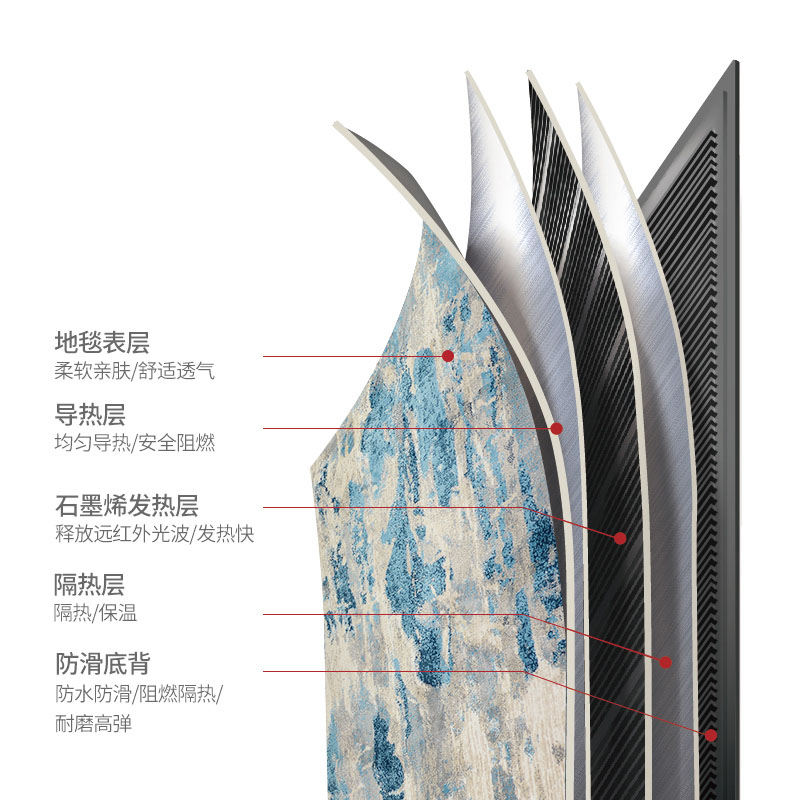 石墨烯地毯采用較適合人體的發(fā)熱載體-應(yīng)用石墨烯聚合納米能量發(fā)熱絲專利技術(shù)(實(shí)用新型專利:ZL 2019 2 1076447.1),在發(fā)熱過(guò)程中釋放遠(yuǎn)紅外光波,是適合人體接收的健康波長(zhǎng)形成熱反應(yīng)。